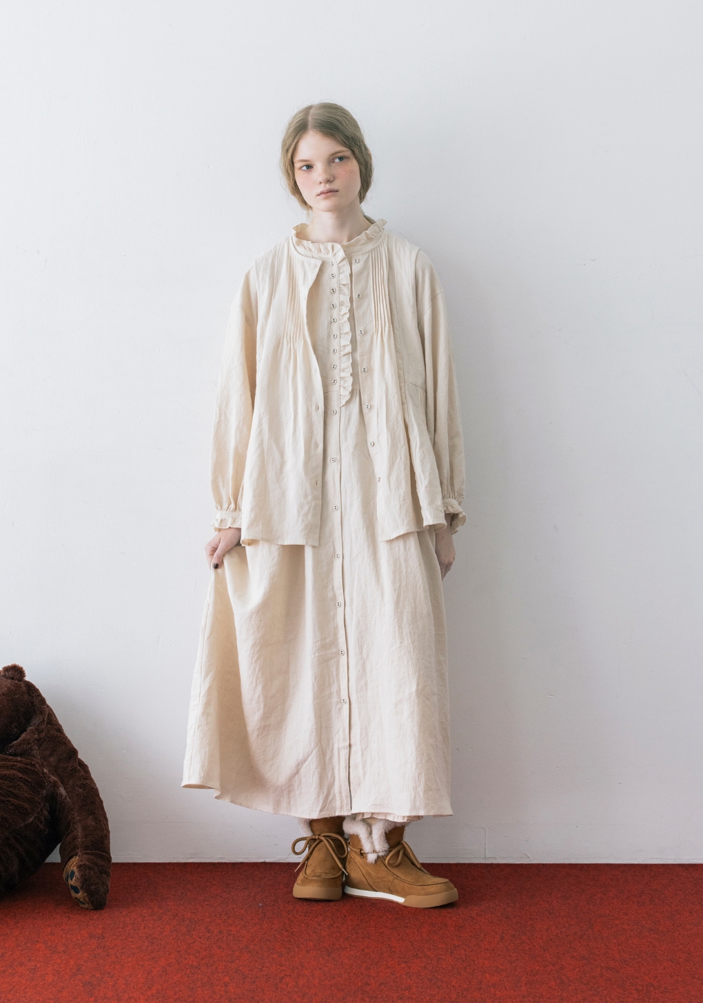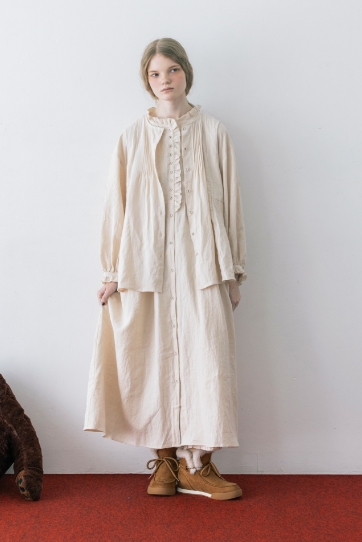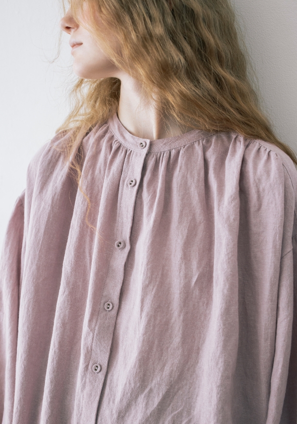 クロスリネンは、リネンとラミーふたつの麻糸を独自に組み合わせたSamansa Mos2 オリジナルの生地。新作は5色のバリエーション。小花柄やシックな冬色をのぞかせてレイヤードを楽しんで。