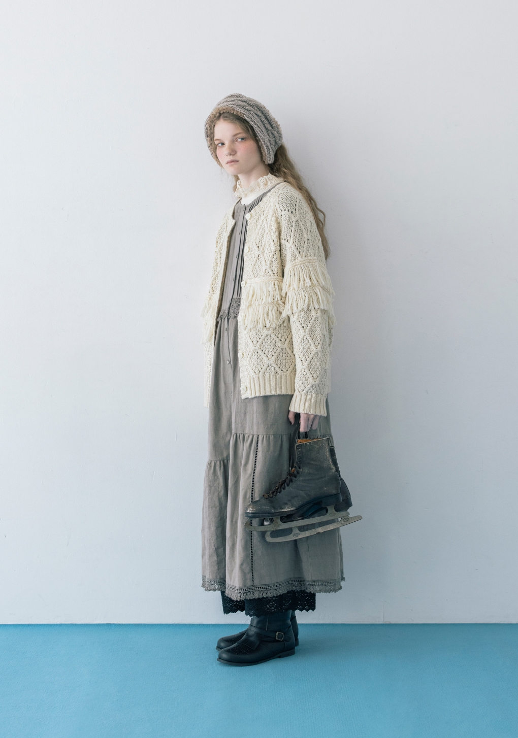 ソリとスケートシューズを持って、