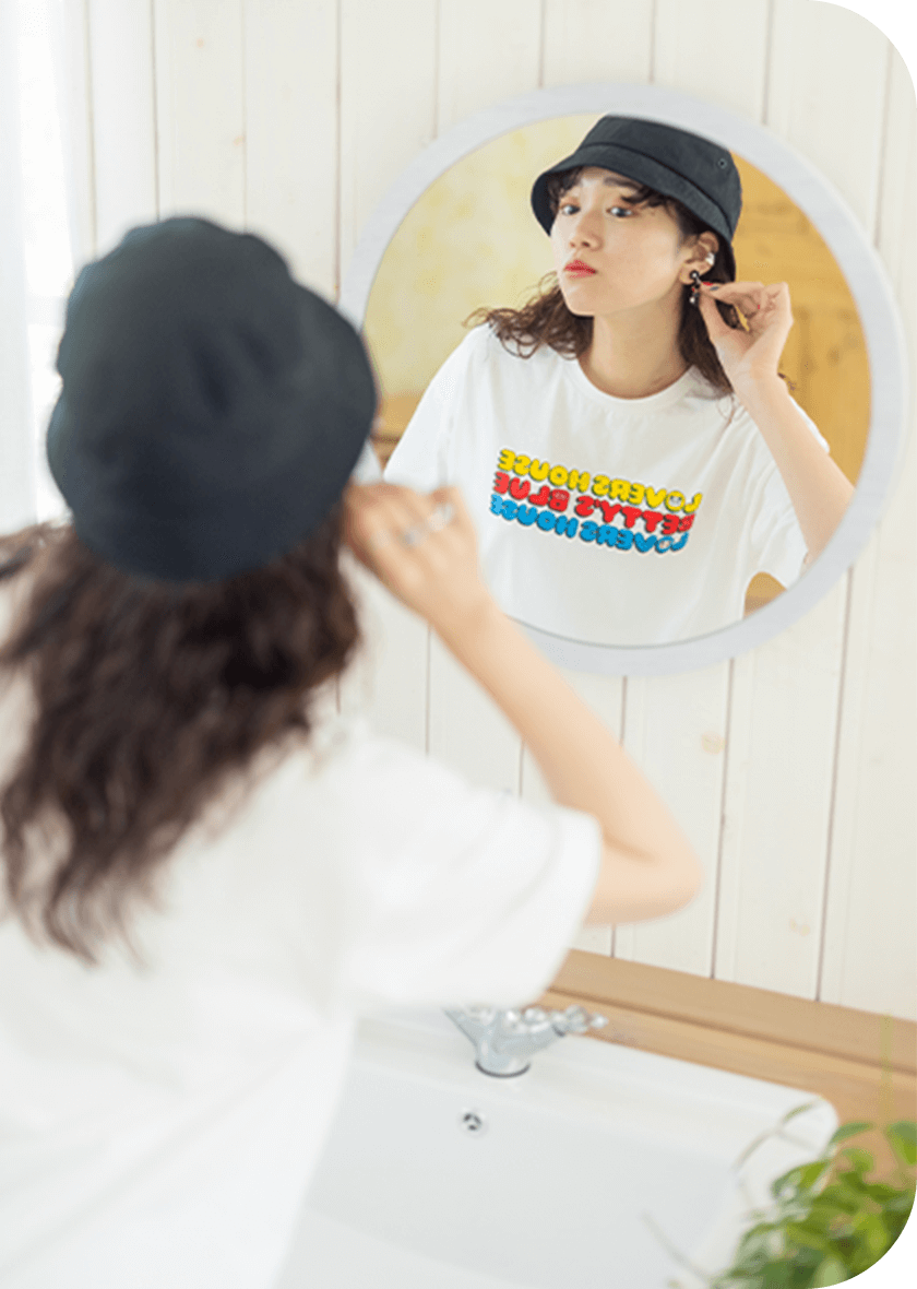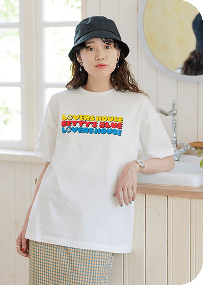 POPなフォントでブランド名を配したロゴ Tシャツ。シンプルなデザインながらも、色使いが夏らしく、HAPPYになれそうな1着! どんなスタイルにも取り入れやすいデザインに仕上げました。