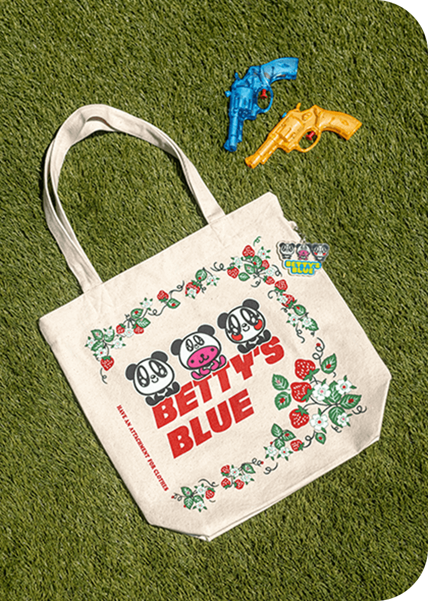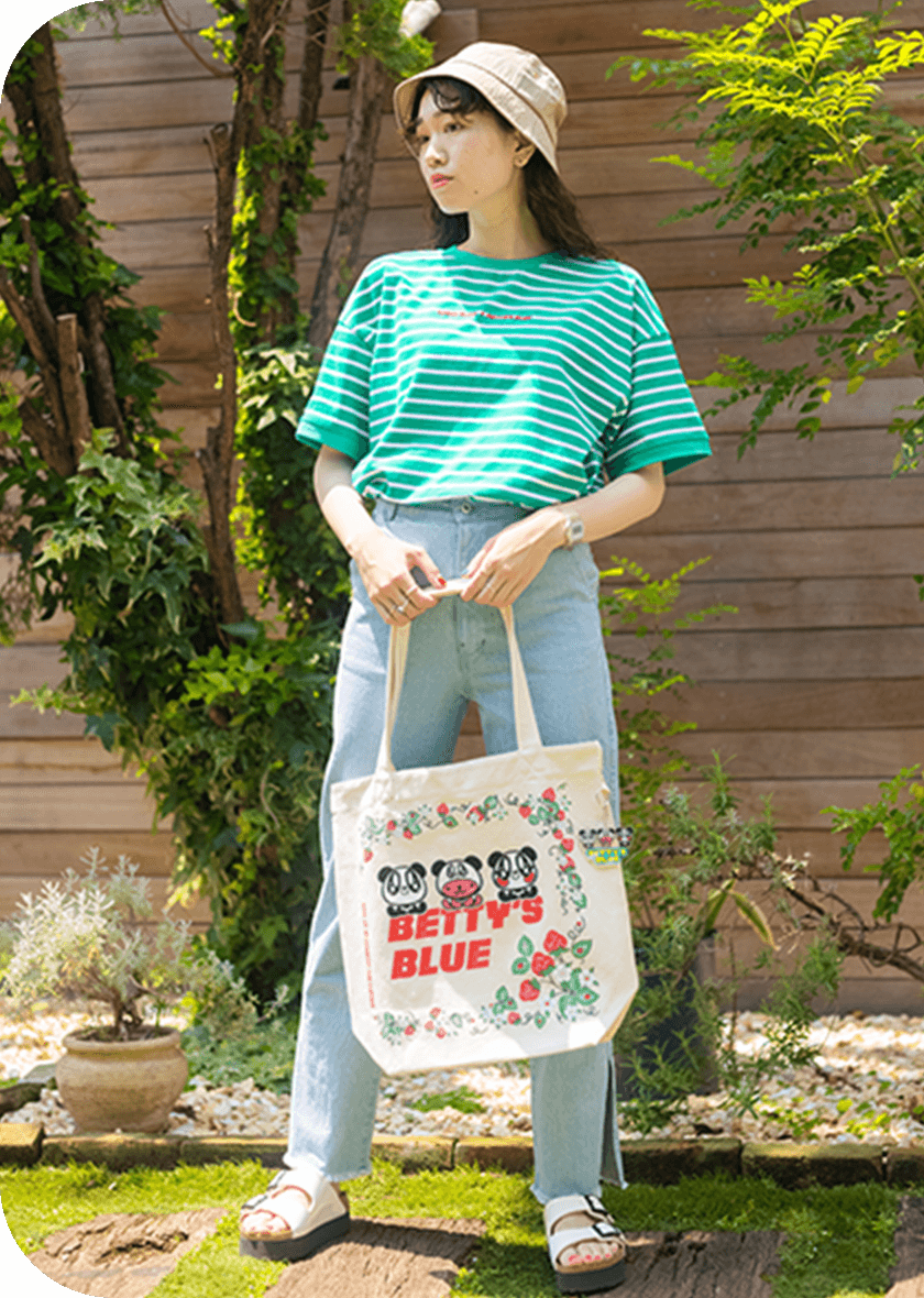 BETTY′S BLUEのいちご柄ショッパーがコラボ仕様で登場!いちご柄にキャラクターたちをONしたトートバッグ。メインバッグはもちろん、あの頃のようにサブバッグとしても…◎ 季節問わずに使える定番アイテムです★