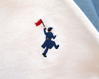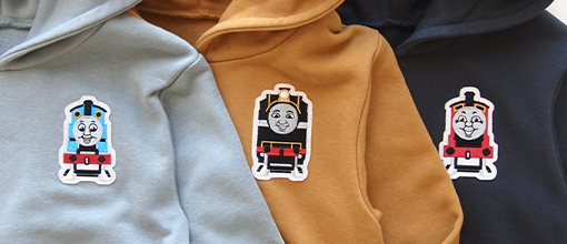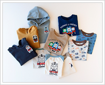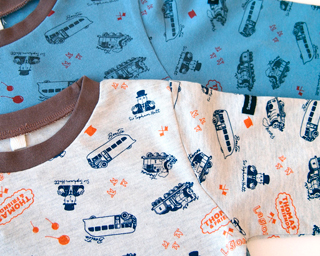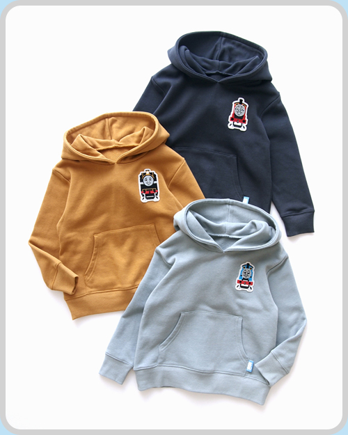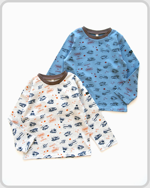 袖口の機関車の刺繍、ネームがポイント。