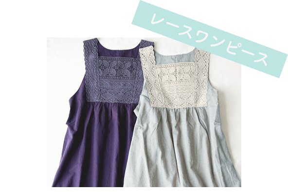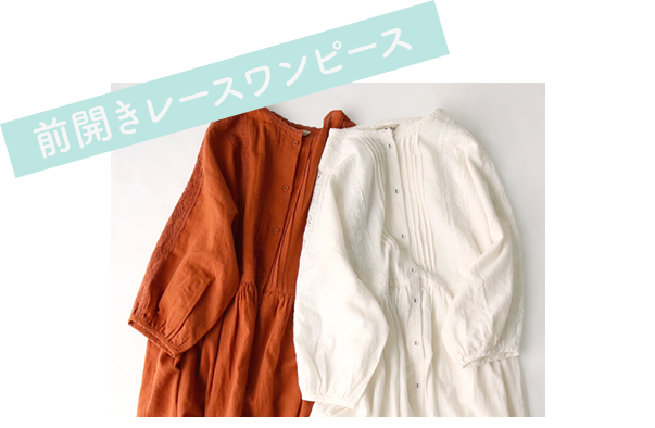 羽織りとしても便利な前開きワンピース。さりげないレース使いがポイントです。