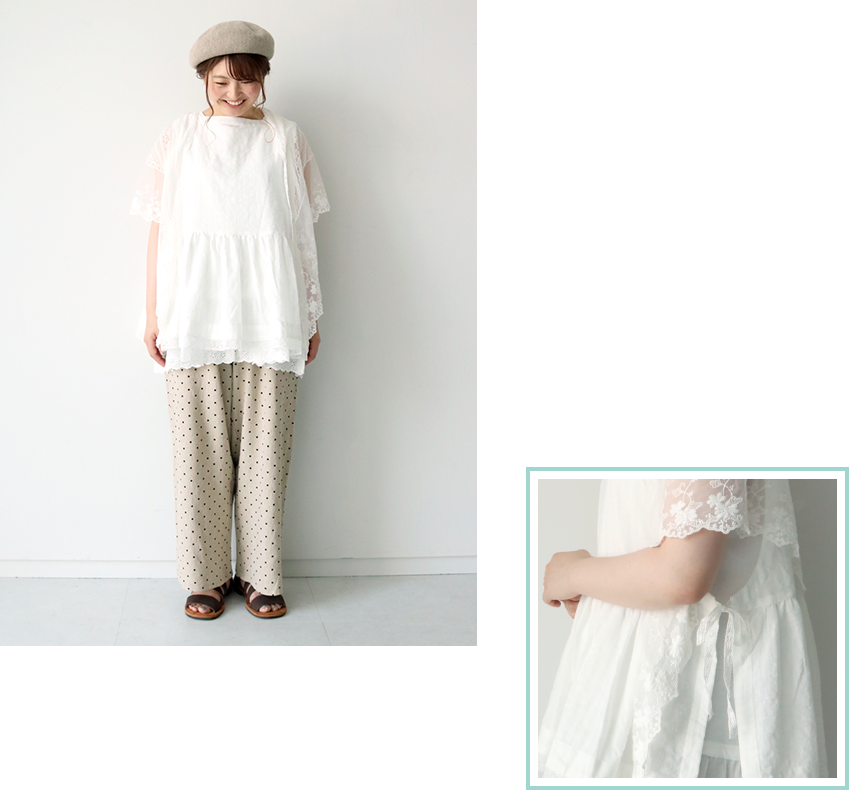 レースアイテムの重ね着でガーリーに