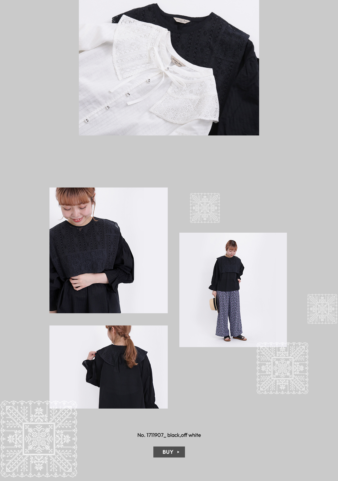 取り外しのできるレース襟が付いたブラウス。サマンサでも人気のレース襟をブラウスとセットにしました。
