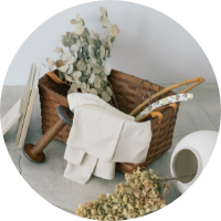 ベロアリボンと、温かみのある小物使いで季節を先取り。