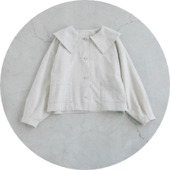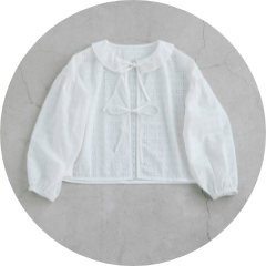 ショートジャケットの裾から、揺れるブラウスをのぞかせた今どき