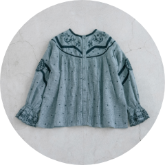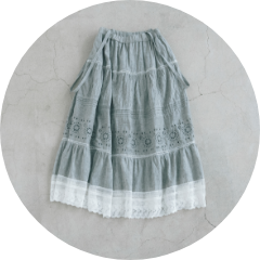 刺繍やレースたっぷりのスカートには、シアー感あるブラウスを