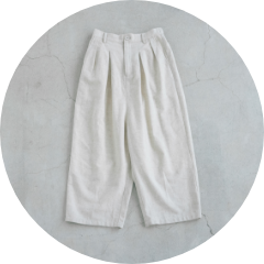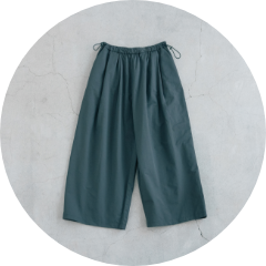まとめて、ノーブルな大人っぽさをキープ。ゆるっとボトムスに