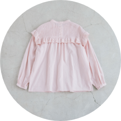ほんのり甘いトップスとベストを仕込み、ブラウスを羽織れば、