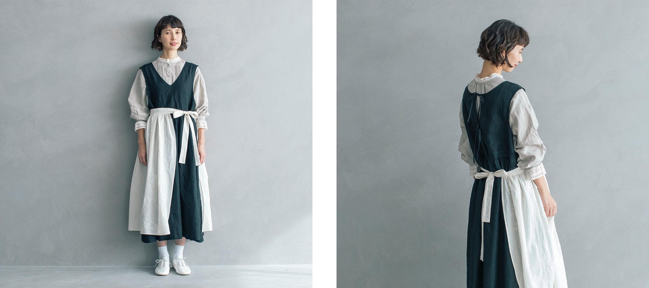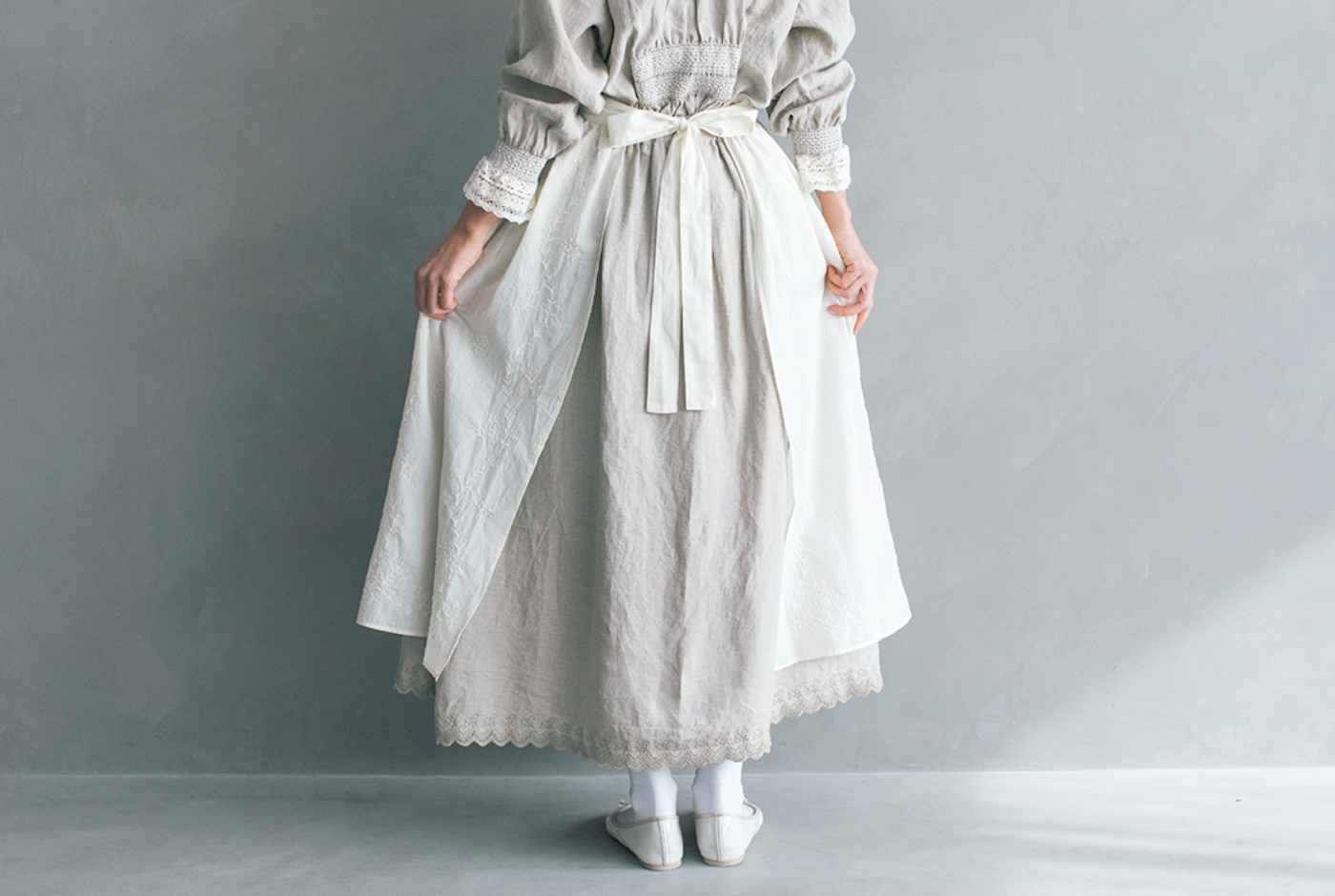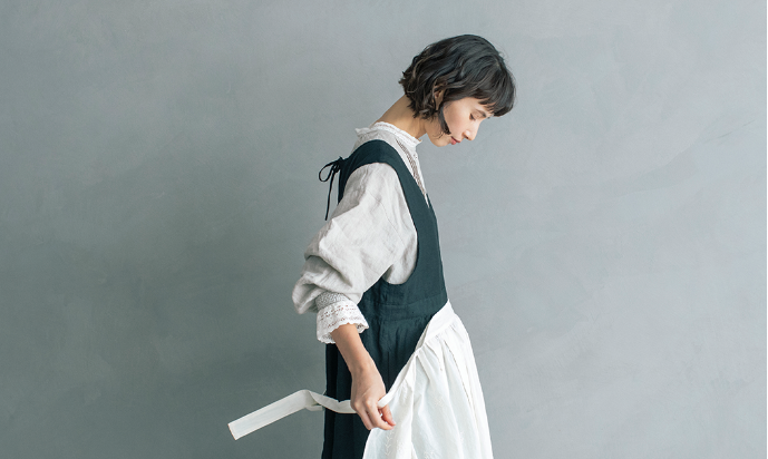 エアリーなエプロンは、リボンを前にしても