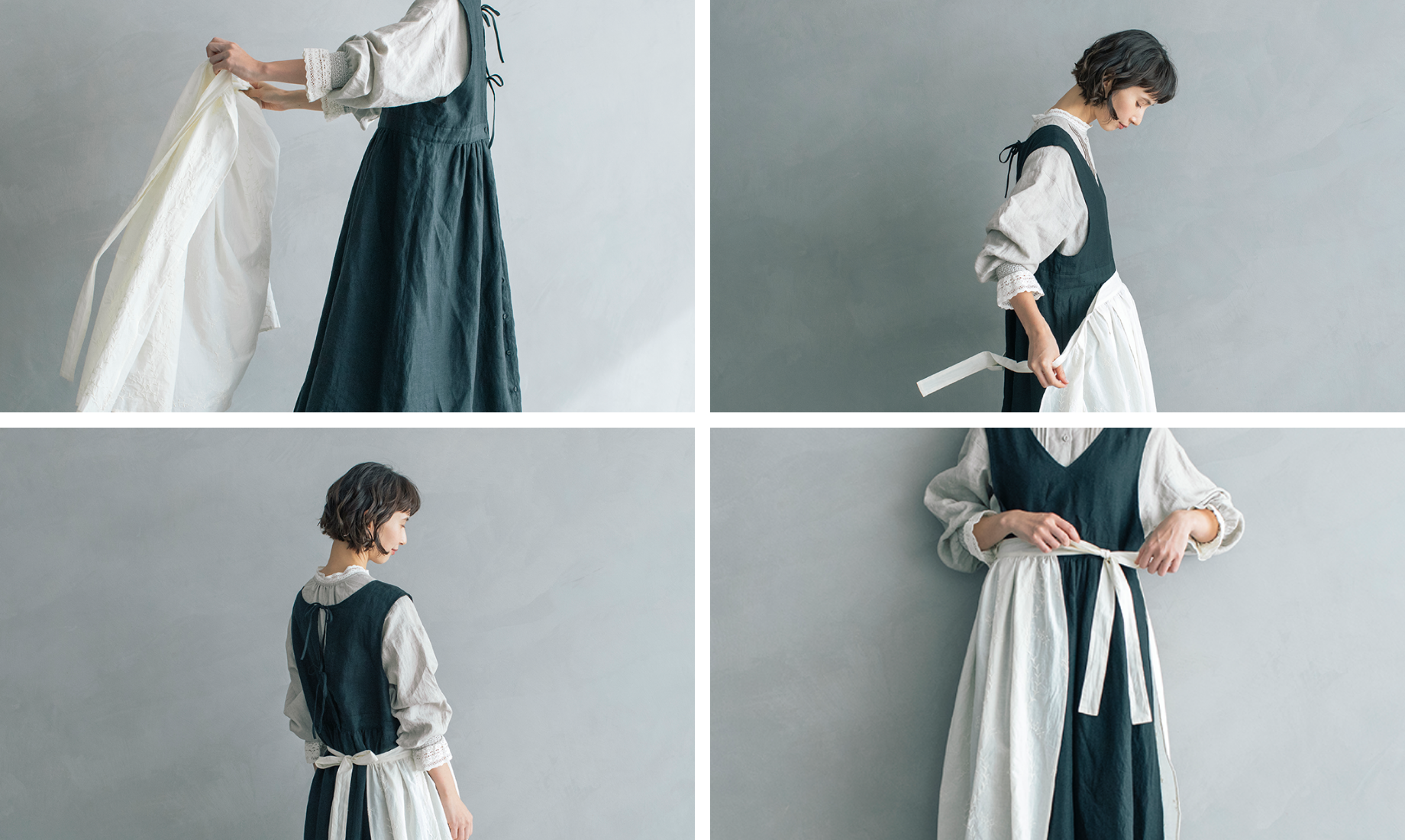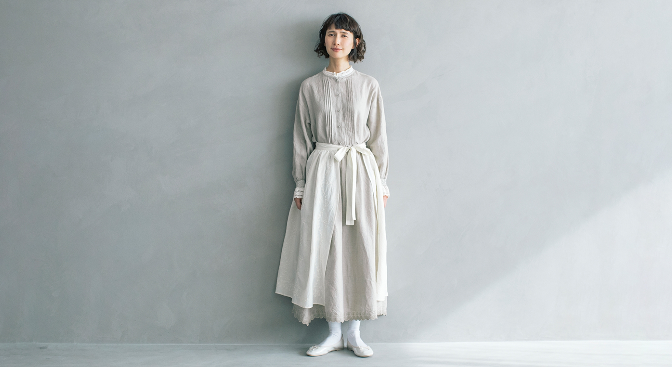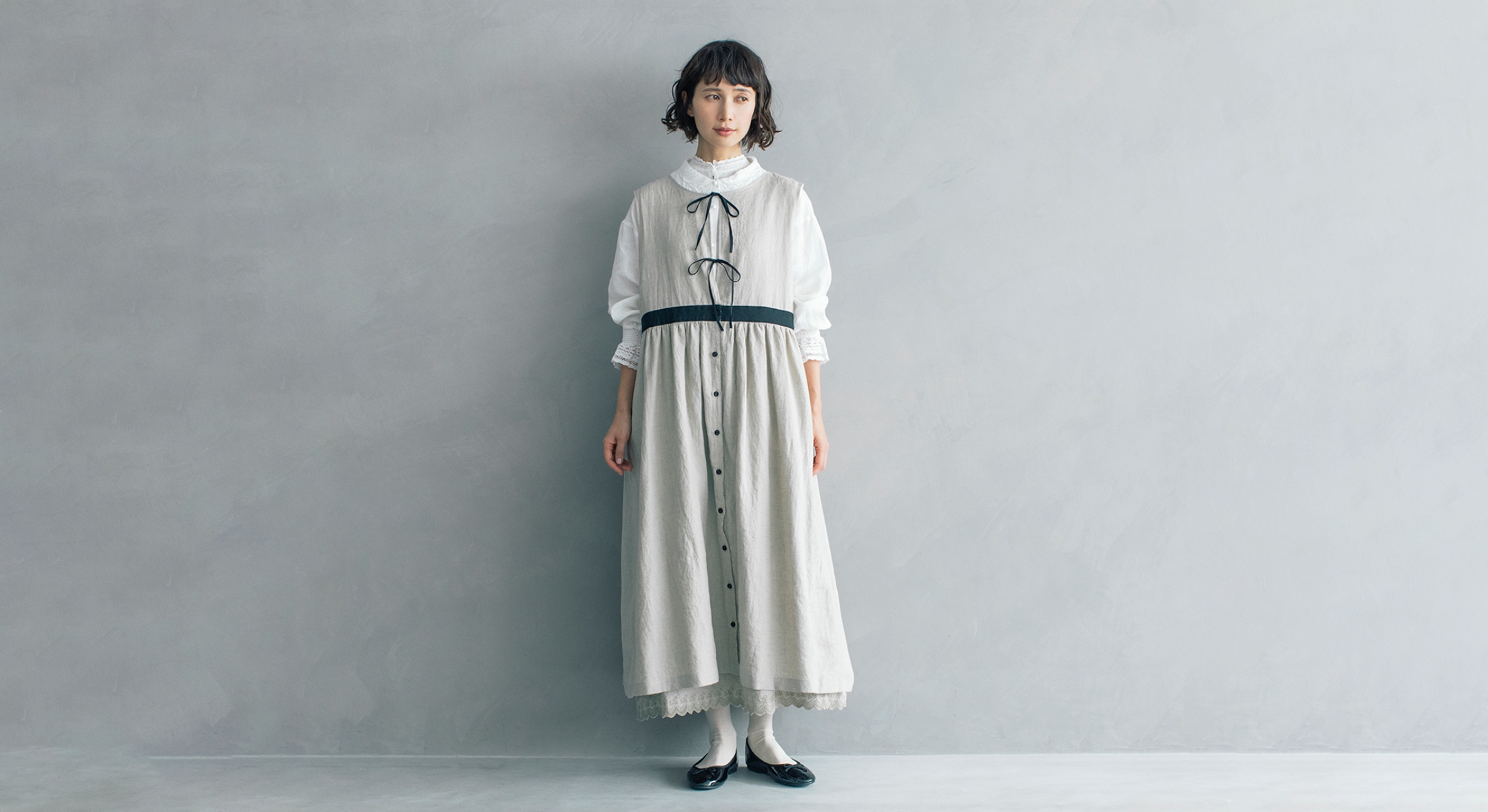 エアリーなエプロンは、リボンを前にしても