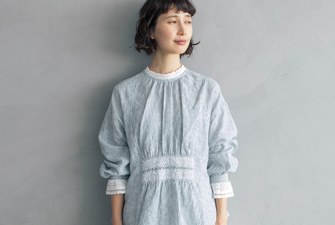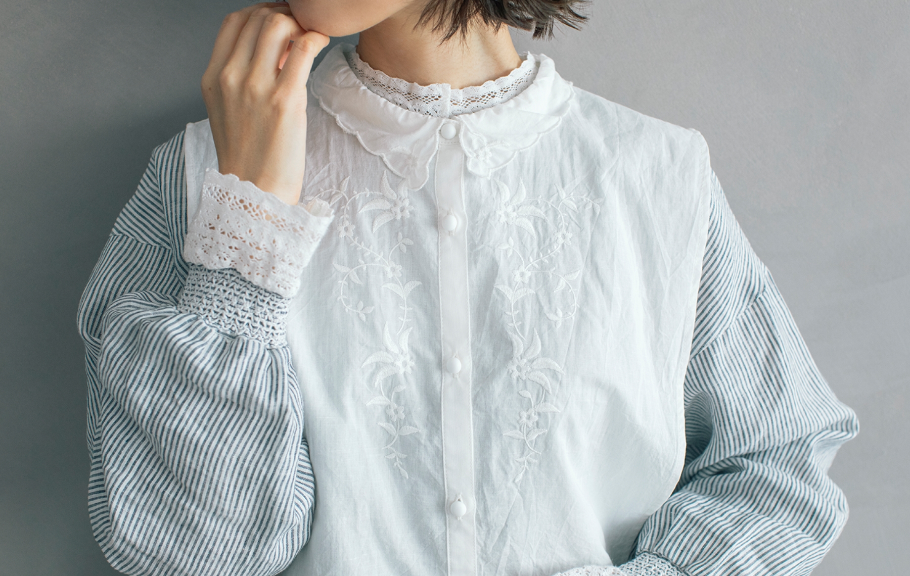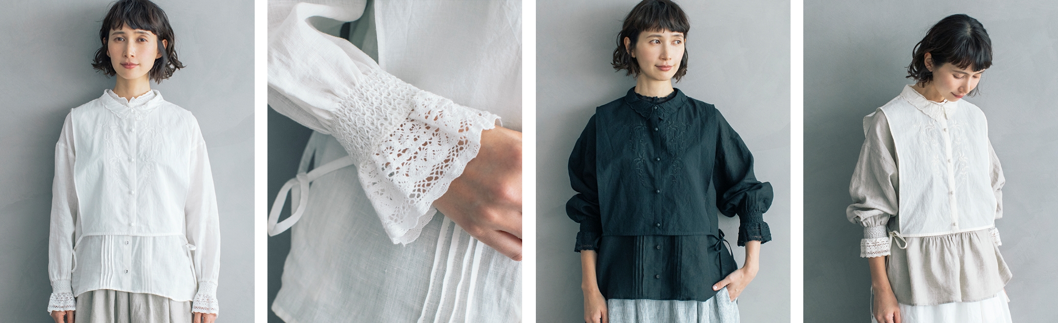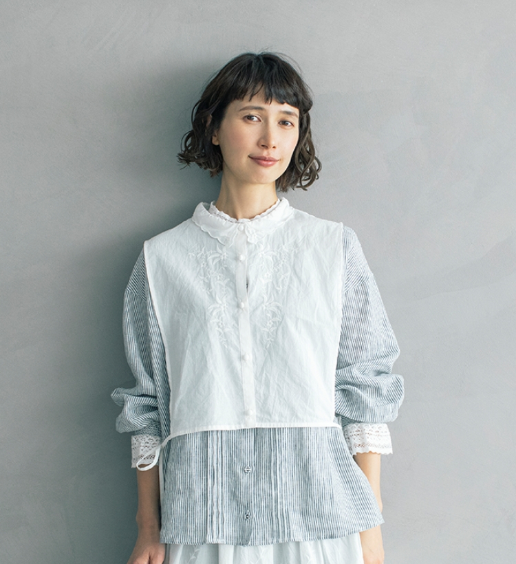 前後で着まわせるブラウスは