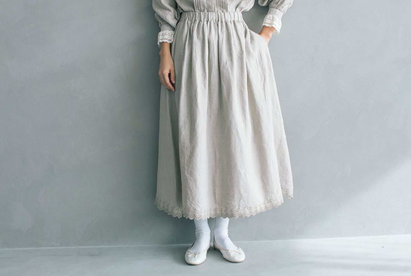 ロングスカートを甘くしたり、
