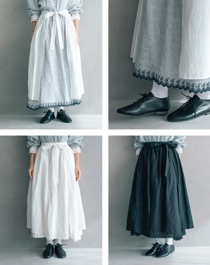 陽気な春に映えるエプロン&スカートの優秀コンビ。