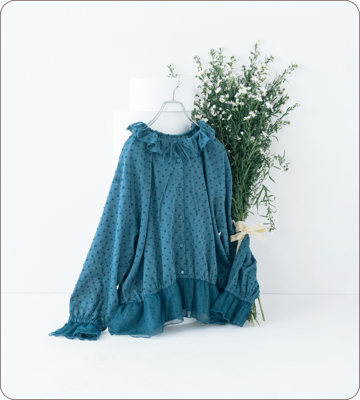 前後着ができるほか、前ボタンを全開にすれば羽織りとしても使える3way! スウェットやカーディガンを重ねて、衿と袖口のチュールを見せるような着こなしもおすすめです。