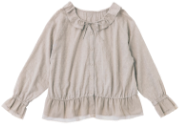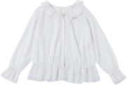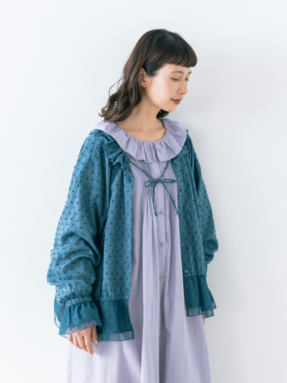 前ボタンをすべて外せば、カーディガンのような羽織りにも。フリル衿を調整するリボンを結んでアクセントにしても可愛い!
