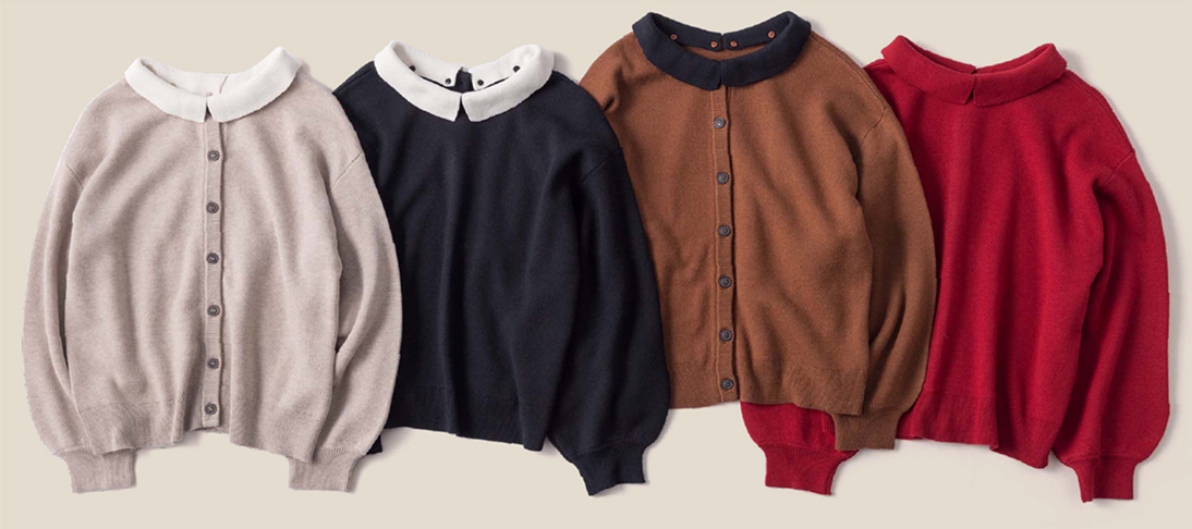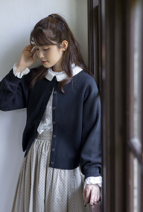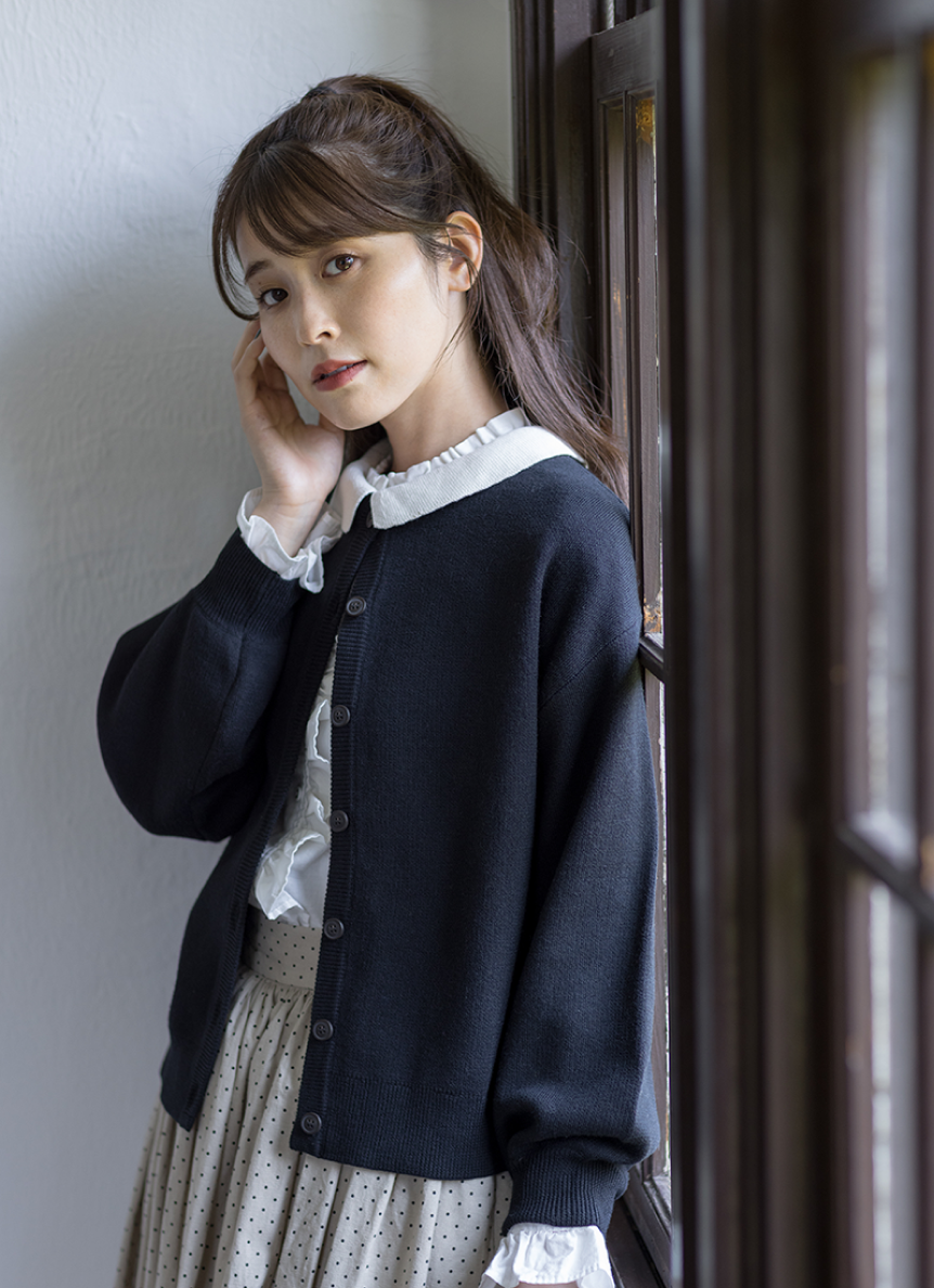 襟を取り外すとシンプルなカーディガンに。ブラウスやニットなど幅広いインナーとの組み合わせが楽しめ、程よい厚みでメインの羽織としても大活躍。襟を取り外すとシンプルなカーディガンに。ブラウスやニットなど幅広いインナーとの組み合わせが楽しめ、程よい厚みでメインの羽織としても大活躍。