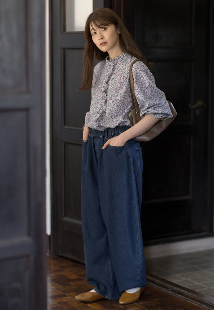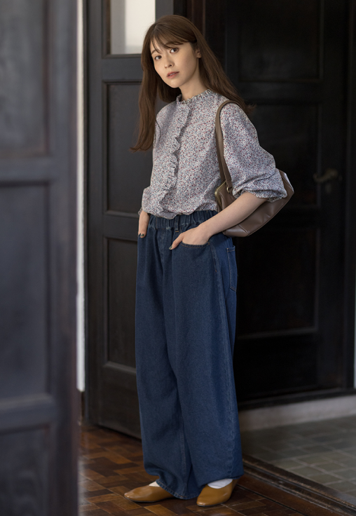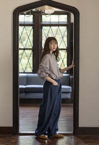 Yubeshi's Comment ブラウスは大人っぽさもありつつ、レトロな雰囲気を目指しました。花柄って本当に面白いですね。1つ1つ花の彩度が違うだけで見え方が変わってくるので、仕上がるまでどきどきでした。タックアウトしてもバランスがよく見えるよう、裾は前後差をつけてラウンドさせています。私はカジュアルなデニム合わせが今の気分。合わせるアイテムによって、甘めにもかっこよくも着られると思いますYubeshi's Comment ブラウスは大人っぽさもありつつ、レトロな雰囲気を目指しました。花柄って本当に面白いですね。1つ1つ花の彩度が違うだけで見え方が変わってくるので、仕上がるまでどきどきでした。タックアウトしてもバランスがよく見えるよう、裾は前後差をつけてラウンドさせています。私はカジュアルなデニム合わせが今の気分。合わせるアイテムによって、甘めにもかっこよくも着られると思います