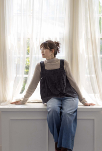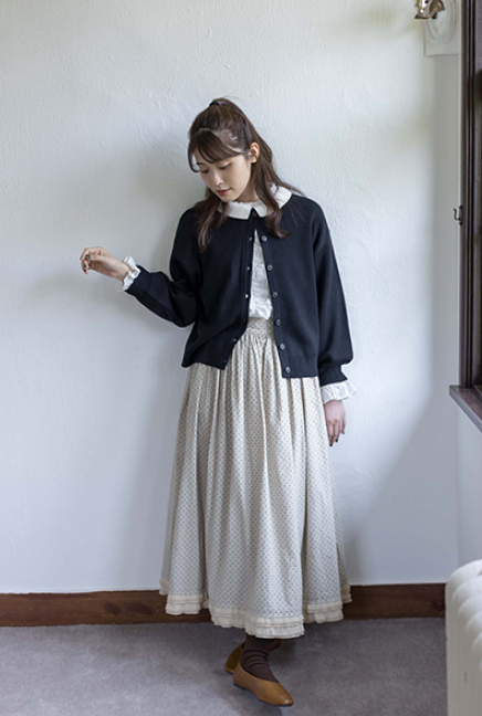 シックに大人っぽく着られるドット柄が魅力。ブラック地には生成りのドットが施され、ナチュラルなワードローブにも似合うよう計算されています。シックに大人っぽく着られるドット柄が魅力。ブラック地には生成りのドットが施され、ナチュラルなワードローブにも似合うよう計算されています。