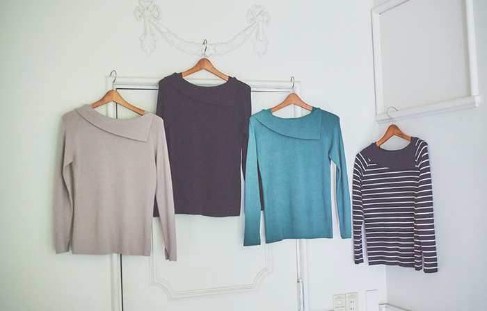アシンメトリーにデザインされた襟が、フェミニンさとおしゃれなムードを漂わせてくれる上品なニット。レーヨン混のなめらかな肌触りで、袖口のスリットもさりげないアクセントに。ベーシックなモカとブラックに、カジュアル感を与えるグリーンとボーダーの4色展開。