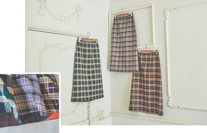 すらっと上品なスカートを、秋らしいカラーのチェック柄でほどよくカジュアルな雰囲気に。印象ががらりと変わるチェック柄と無地のリバーシブル仕様で、スタイリングの幅がぐっと広がります。タイトすぎない台形シルエットで、はき心地のよさも魅力です。