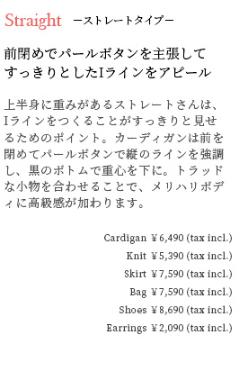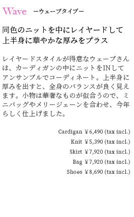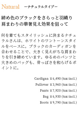 Cardigan ¥6,490 (tax incl.) , Knit ¥5,390 (tax incl.)
