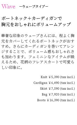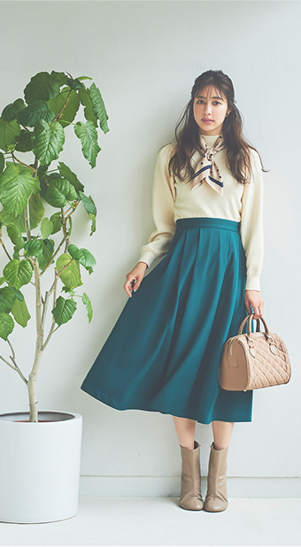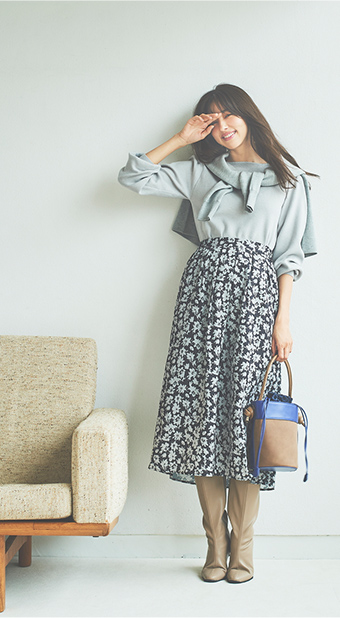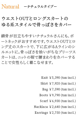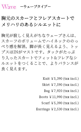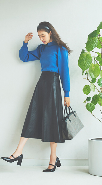 Knit ¥5,390 (tax incl.) , Skirt ¥7,590 (tax incl.)