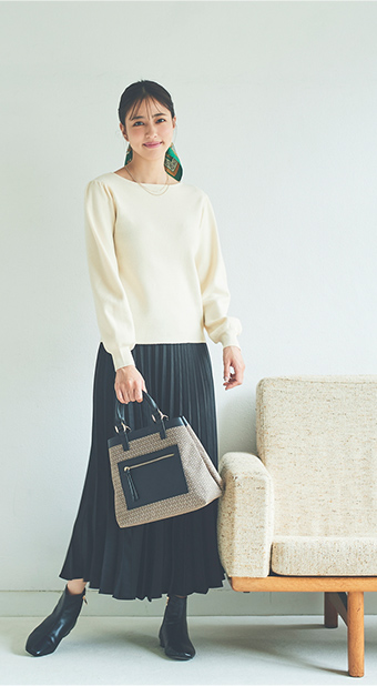 Bag ¥7,920 (tax incl.) , Earrings ¥2,530 (tax incl.)