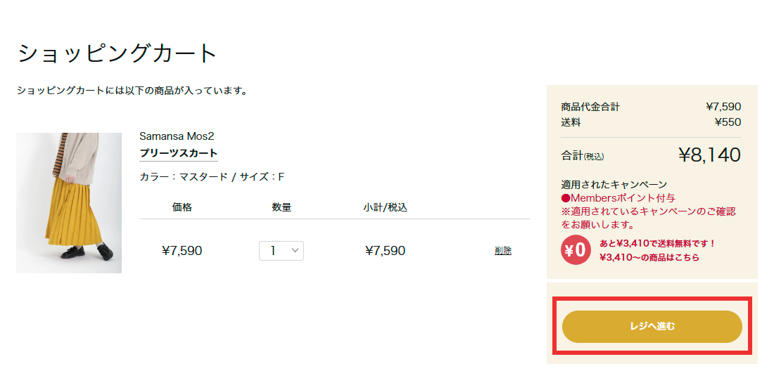 - 商品をカートに入れ、『レジへ進む』を押下