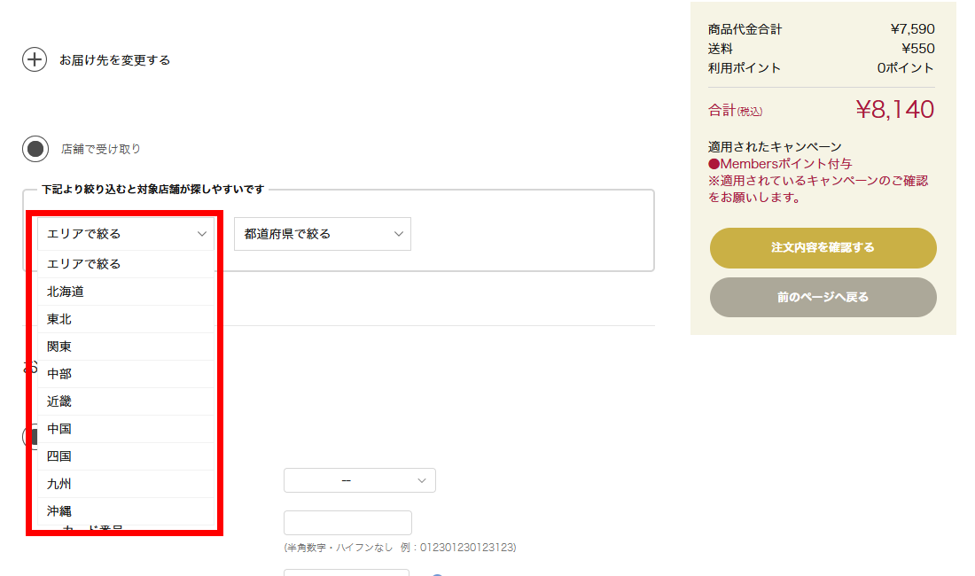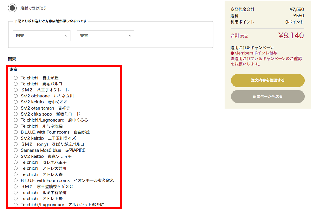 - 商品を受け取りたい店舗を選択