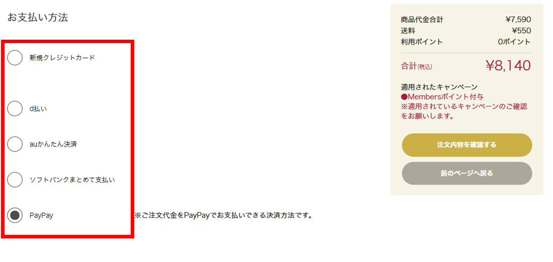 - お支払い方法を選択
