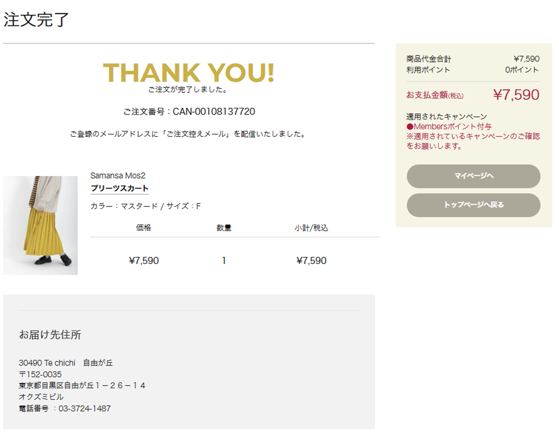 - 注文完了