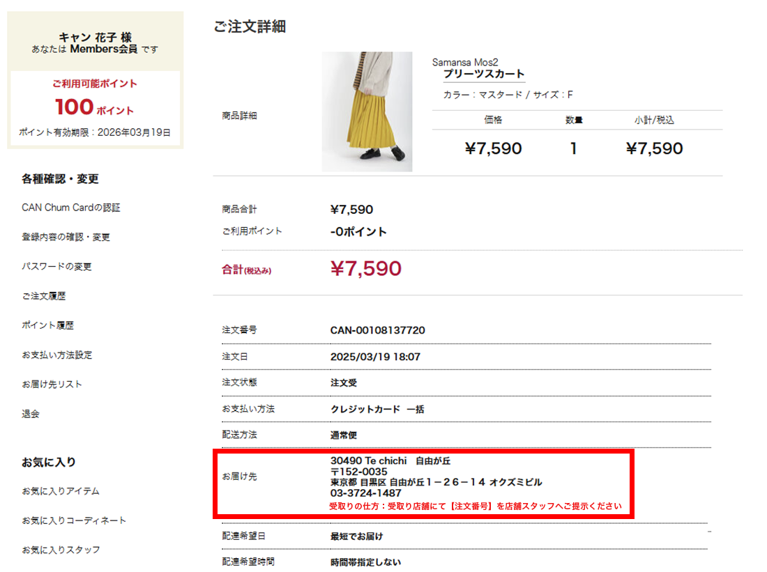 - 注文履歴を確認